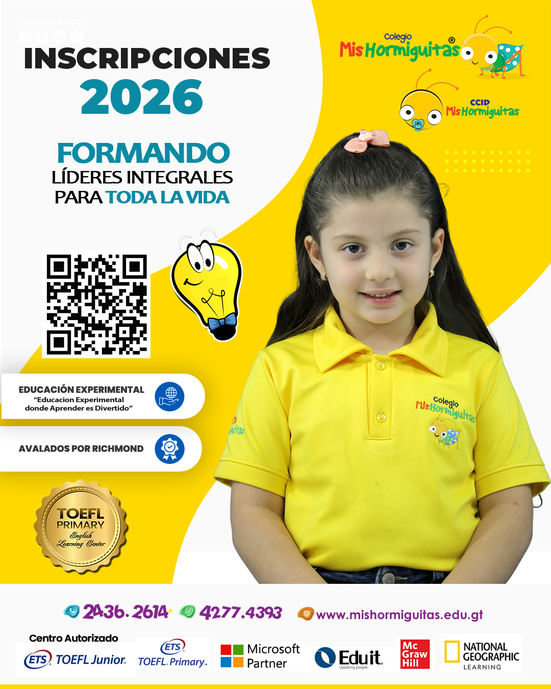 En Colegio “Mis Hormiguitas” nuestros alumnos se sienten amados, atendidos y cuidados como si estuvieran en casa. Como Institución Educativa, hemos diseñado un programa pedagógico integral, que brinda una enseñanza de excelente calidad, fortaleciendo el adecuado manejo de las emociones y la práctica de valores como forma de vida, además del desarrollo de capacidades y habilidades de aprendizaje del Idioma Inglés y la Tecnología.